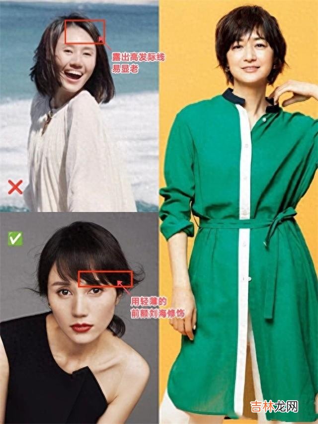 【穿搭 建议中老年女人,这2种“假时髦、真土气”的衣服少穿,显老廉价】细节02.用“刘海”修饰发际线