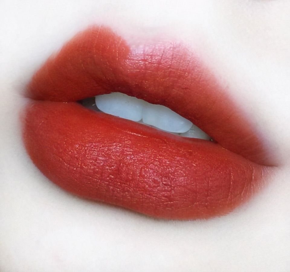 虽然阿玛尼家的405烂番茄色真的超级的火,但是个人还是更偏爱这款400色号,感觉这个颜色会比405相对更加显白百搭,坦白说405不如这款颜色更适合黄皮。它是属于那种带点蓝调的红色,被大家称之为“绝美的正红色”。因为它涂上真的超级有气场,尤其是厚涂的时候很显白。哑光丝绒的质地,上唇非常顺滑好推开,而且不会拔干,灯光下会有一种冷艳的感觉,涂上就是妥妥的气质女神了。